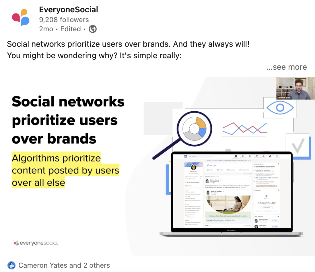 Why? Because the LinkedIn algorithm prioritizes user’s content over companies’ posts.
