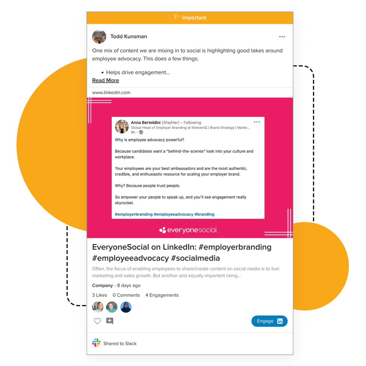 30% of consumers find job posting content from employees the most relevant and useful. Job postings perform wonderfully on social and are some of the highest engaged with content shared from EveryoneSocial.