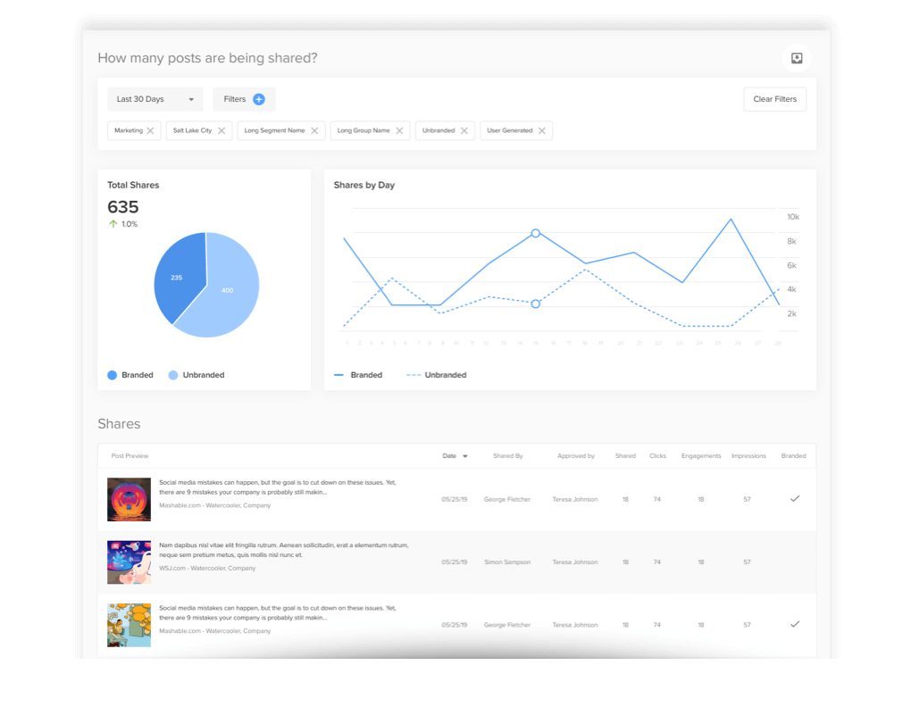 You want to know what your people share and where, as well as how it’s received. We’ll give you all that data.
