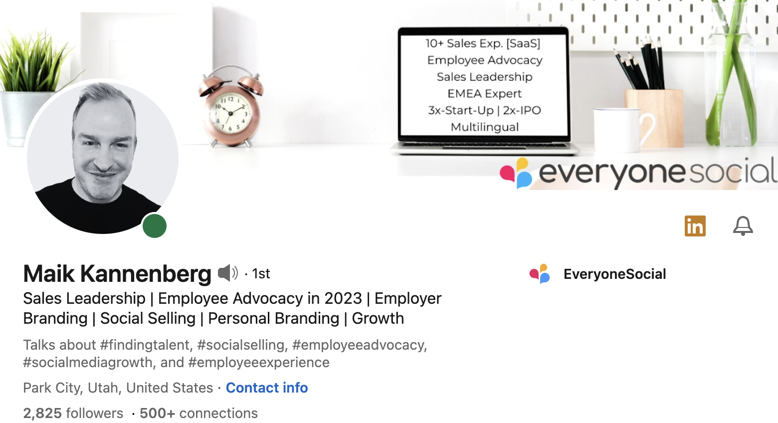 Your LinkedIn profile should also have a high-quality headshot, a branded cover photo, a compelling headline, and detailed bio that features relevant keywords.