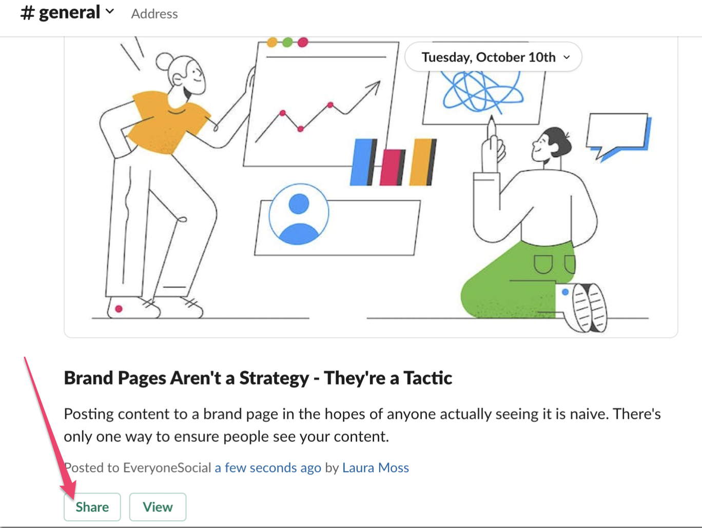 They can even share to their social channels from within Slack!
