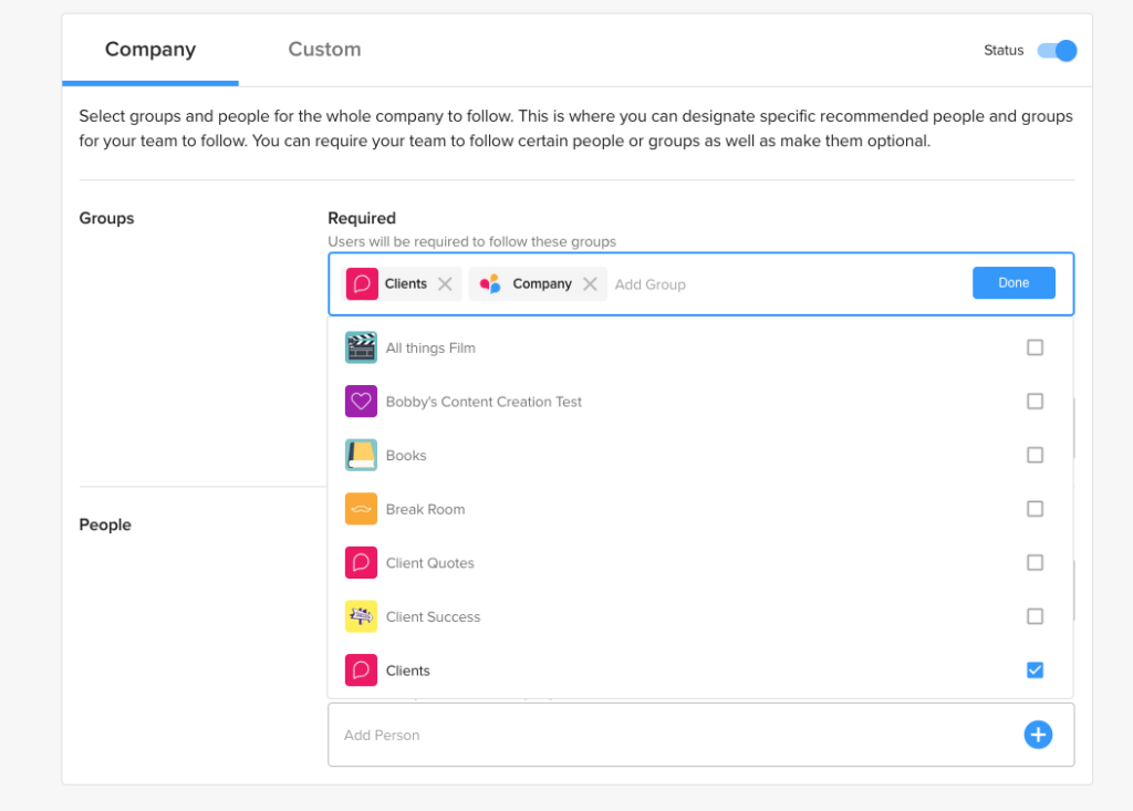 That’s not a big issue, unless you’re like most people and don’t have all the groups in your organization memorized. Now, EveryoneSocial will suggest groups to a user wherever there’s a dropdown, so no need to rely on your at-times-questionable memory!