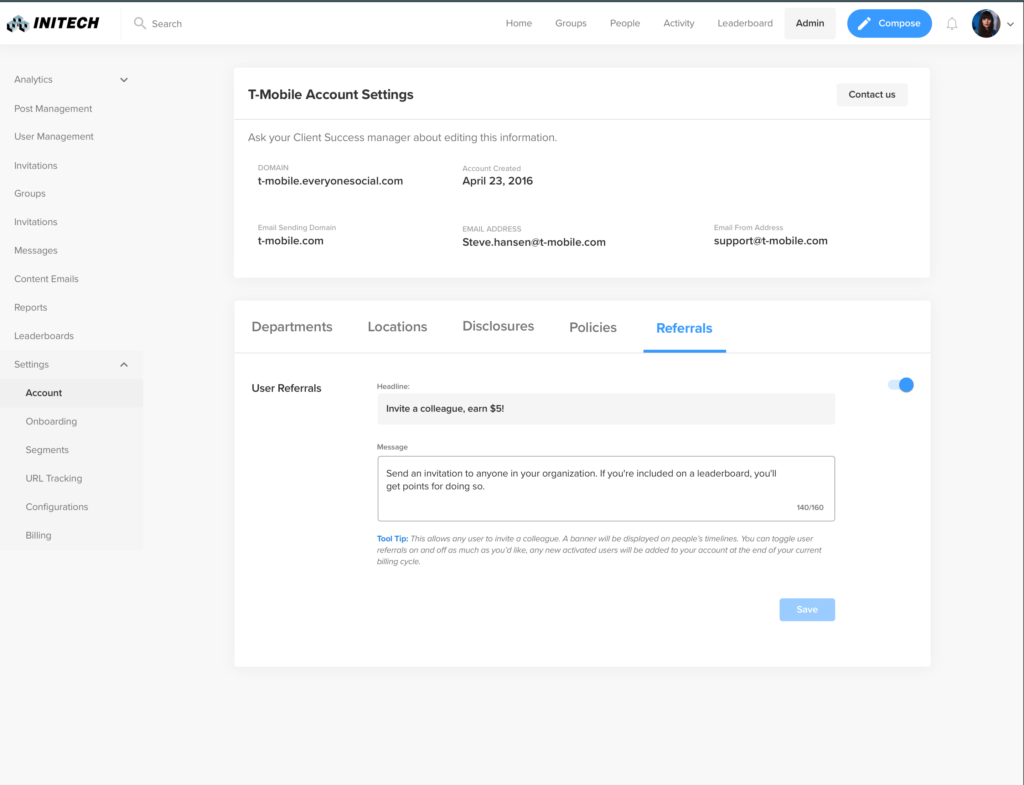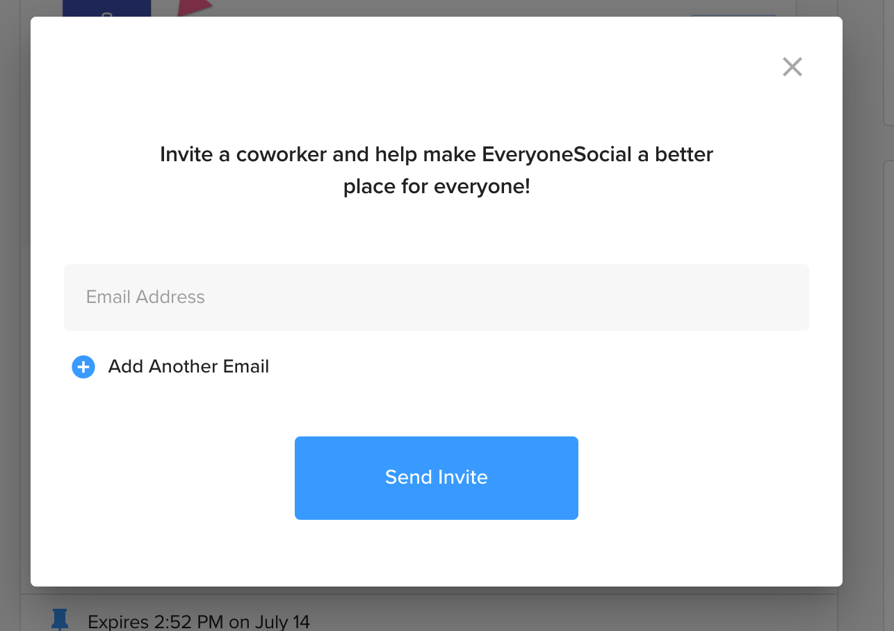 The last of our platform functionality changes comes in the form of improved referral invites, which can be seen in the top right-hand corner of your Timeline page, if your program’s Admin has the feature turned on.