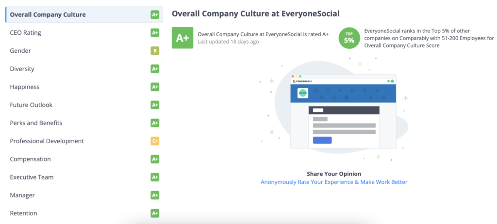 And we can’t help but toot our own horn a bit since Comparably recently named EveryoneSocial one of the best companies to work for in Salt Lake City.