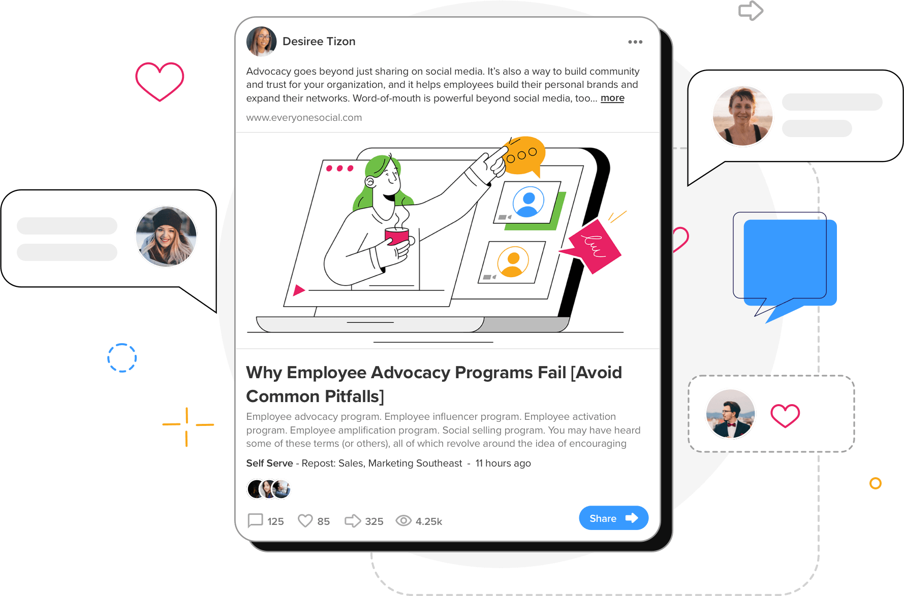 Save money, create organic compounding growth, and increase your competitive edge by activating your people to share content to their networks.