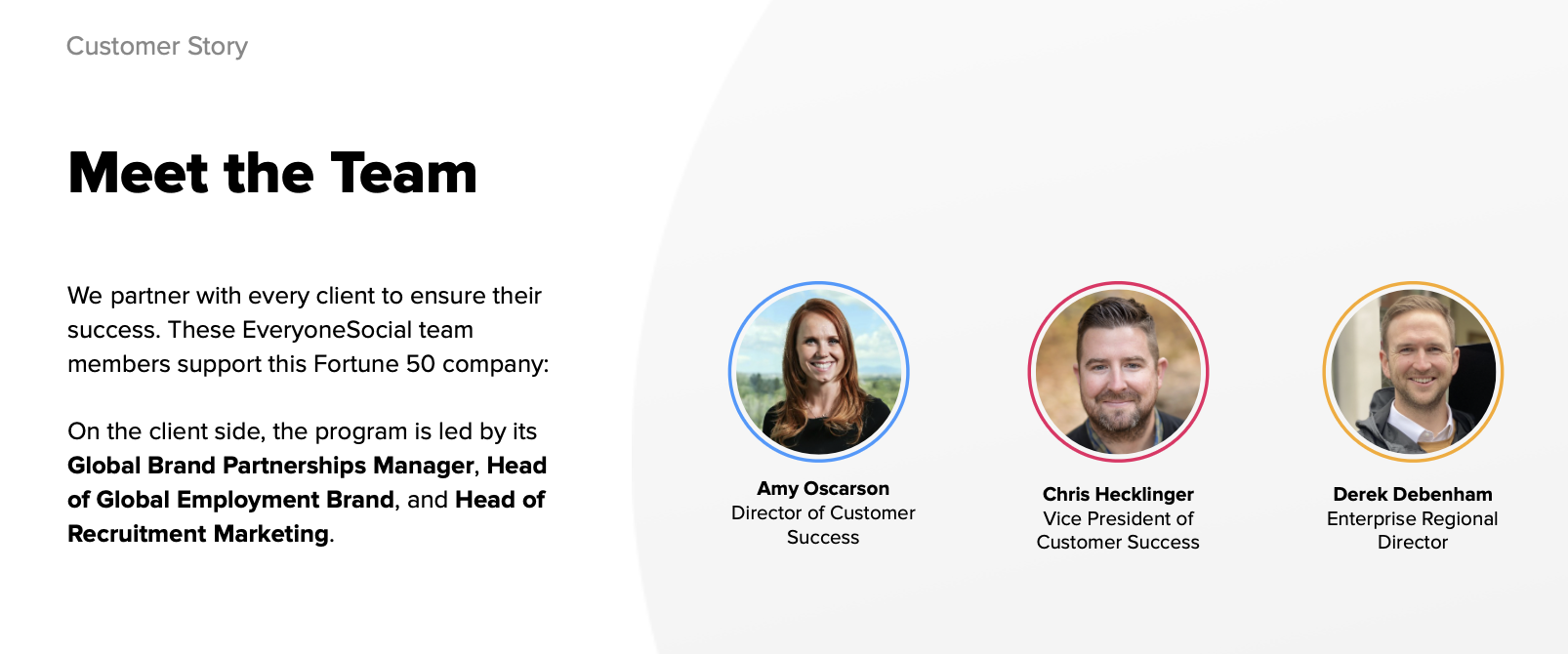 We partner with every client to ensure their success. These EveryoneSocial team members support this Fortune 50 company: