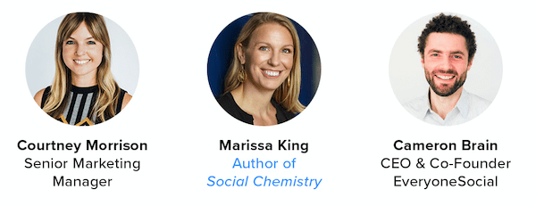 Fill out the form to get the recording of our live discussion with Marissa King, author of Social Chemistry and professor of organizational behavior at the Yale School of Management, and EveryoneSocial’s Cameron Brain, CEO & Co-Founder, and Courtney Morrison, Sr. Content Marketing Manager.